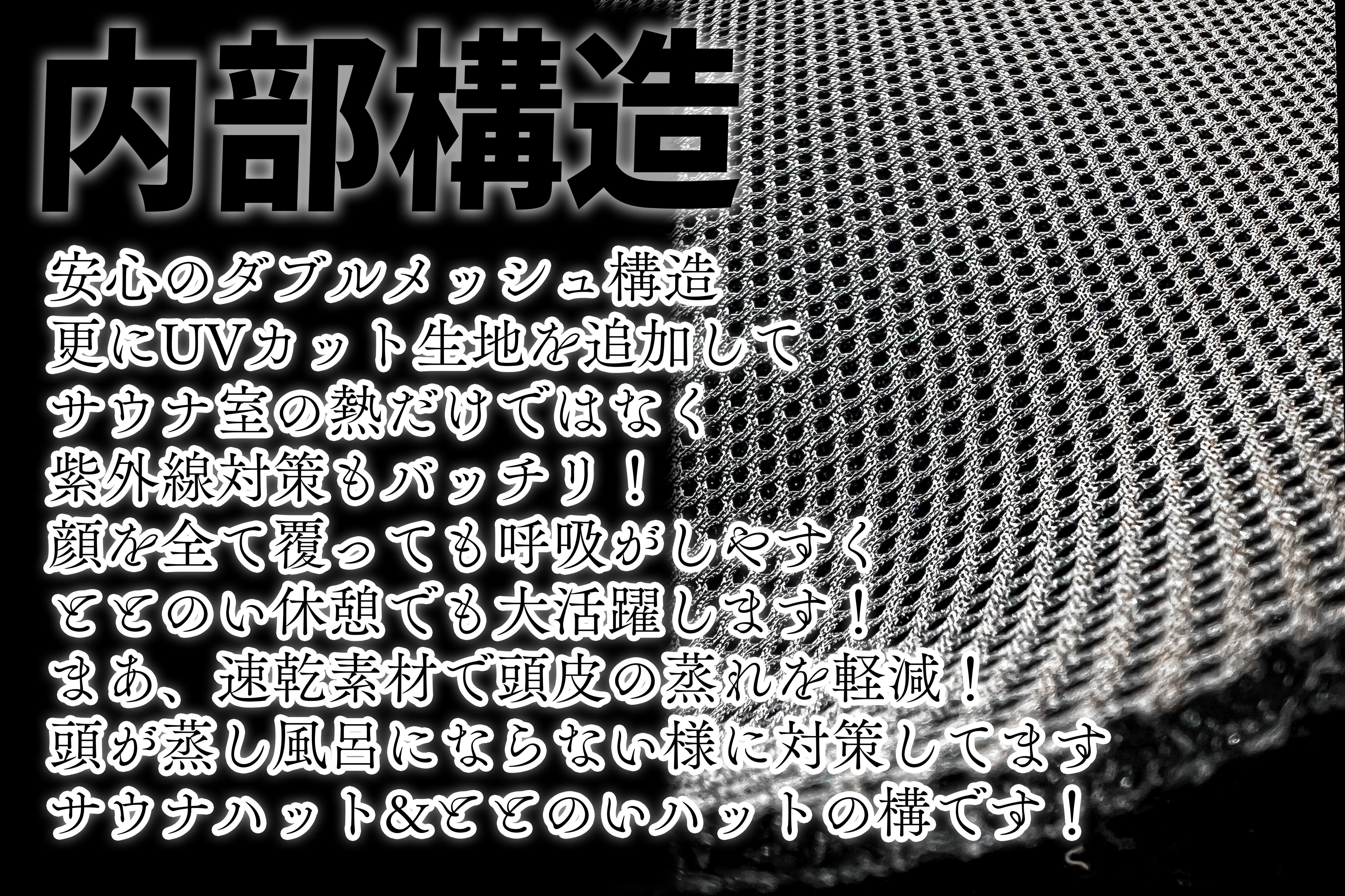 編み込みのタオル生地を使用したサウナハットです。頭皮の蒸れを軽減し、快適なサウナ体験をサポートします。